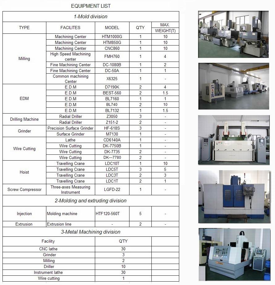 Be equipped with advanced facilities like machining center, precision milling, imported EDM, wire cutting , measurement equipment for quality control etc. We are ever improving our capacity and quality to greatly meet customer requirements.